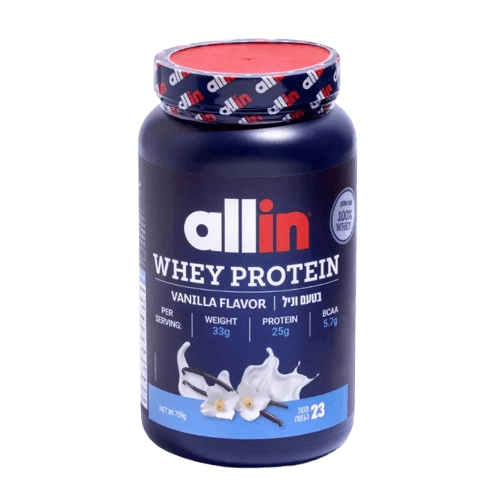 אבקת חלבון בטעם וניל | 759 גרם | 23 מנות הגשה | 25 גרם חלבון במנה | 5.7 חומצות אמינו מסועפות | Whey Protein