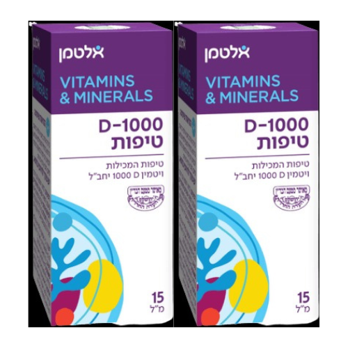 טיפות D-1000 - 15 מ"ל טיפות המכילות ויטמין D 1000 יחב"ל - כשר פרווה - מבית אלטמן - אריזת זוג