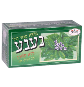 תה נענע מגיע בקופסה מעוצבת, המכילה 25 שקיקים, עבור חווית שתייה נוחה ומרעננת.