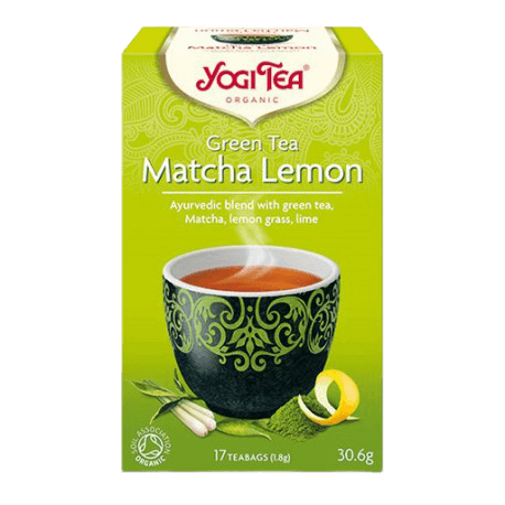 תה עם צמחים להכנת משקה בחליטה אורגנית | תה ירוק מאצ'ה לימון |מכיל 17 שקיקים | yogi tea