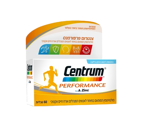 "צנטרום פרפורמנס" הינו מולטי-ויטמין המותאם במיוחד לאנשים צעירים (גילאי 18-35) ולעוסקים בספורט ופעילות גופנית מאומצת
