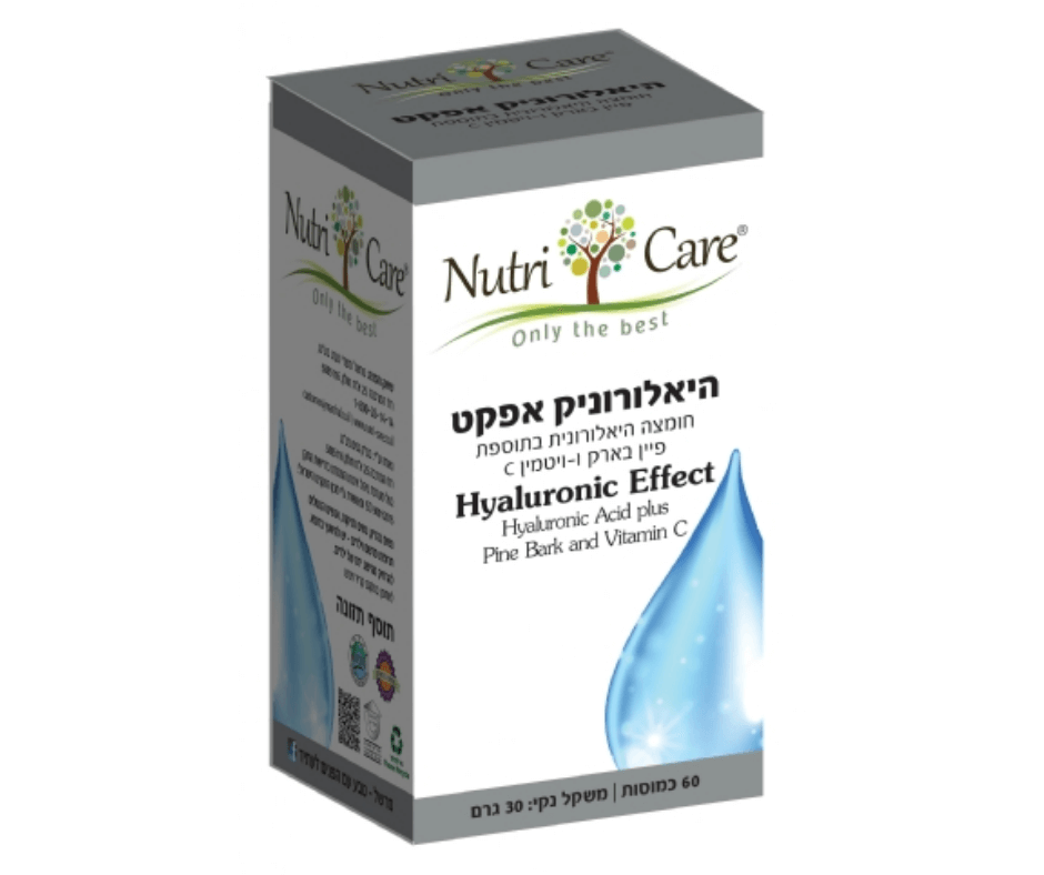 נוטרי קר | היאלורוניק אפקט | חומצה היאלורונית | בתוספת ויטמין C ופיין בארק | מכיל 60כמוסות | מעודד ייצור פנימי נוסף של החומצה ברקמות העור