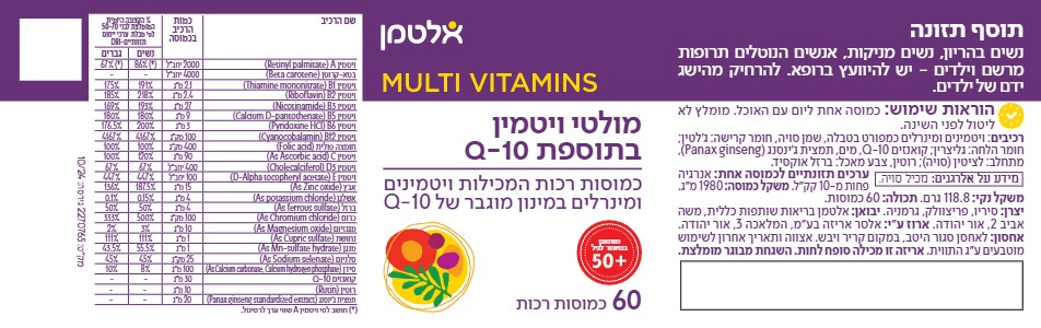 מולטי ויטמין | בתוספת Q10 | מכיל 60 כמוסות רכות | מבית אלטמן