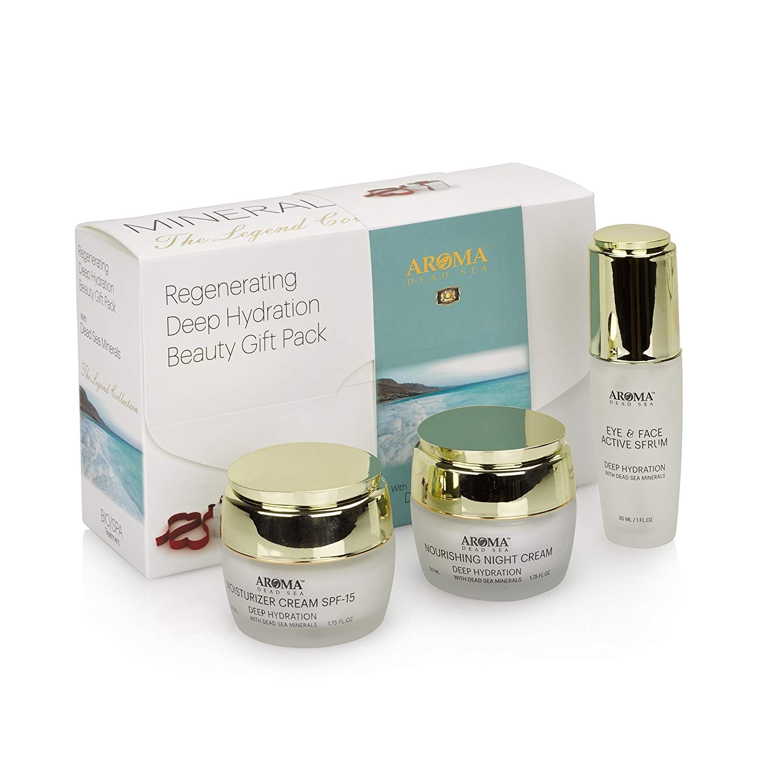 ערכת טיפוח יוקרתית הכוללת שלושה מוצרים ממותג Aroma Dead Sea. מוצרי הטיפוח יעזרו לחידוש ולהזנת עור הפנים מינרלים מים המלח, תוך הלחות והגמישות של העור.