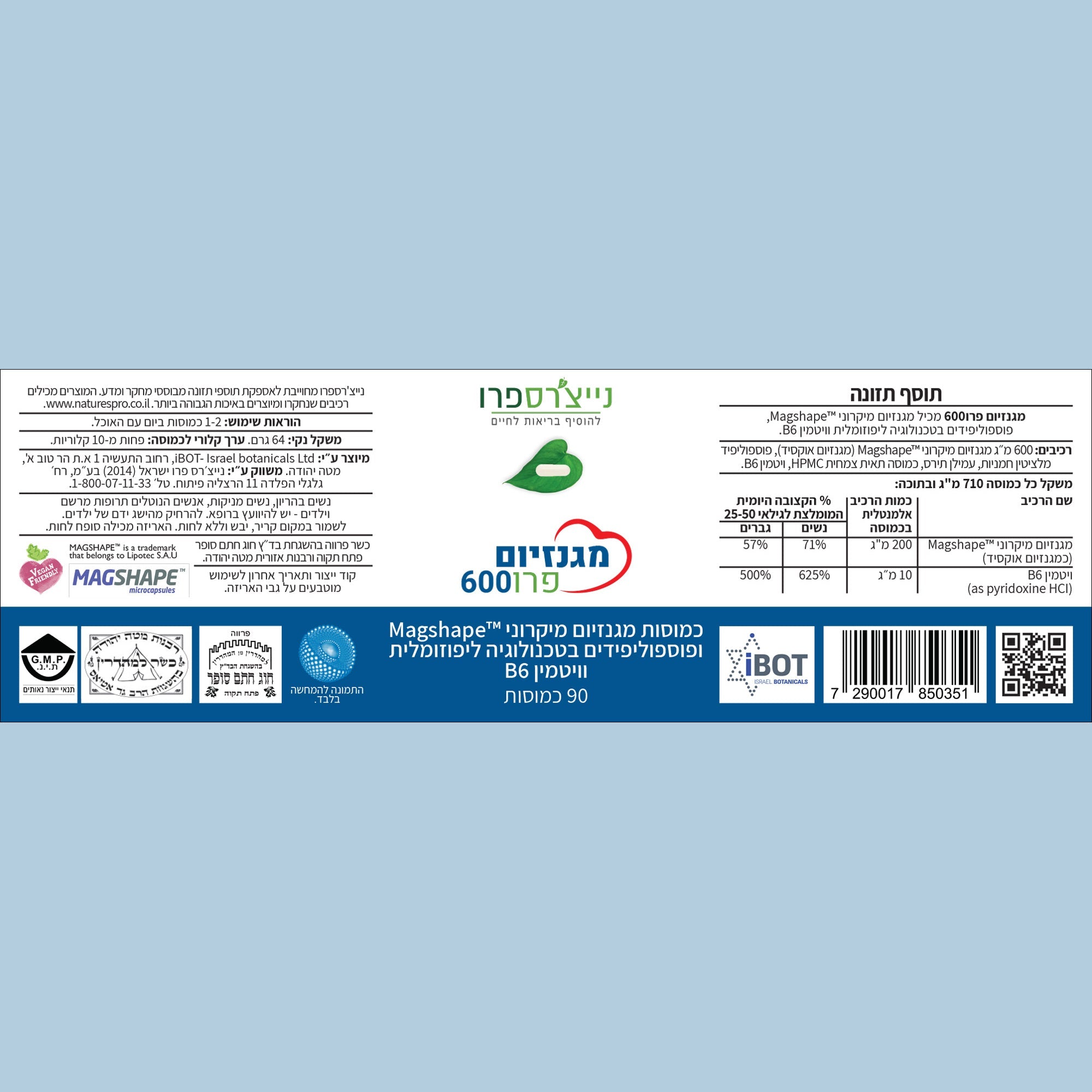 מגנזיום פרו 600 -מבית נייצרס פרו - מכיל 90 כמוסות