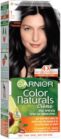 קולור נטורלס 1 שחור טבעי הוא צבע שיער קבוע המעניק טיפוח בנוכחות 5 שמנים מטפחים. הפורמולה מעניקה עד 100% כיסוי שיער לבן במשך עד 8 שבועות ושיער חזק, רך ותוסס עם ברק חלק.