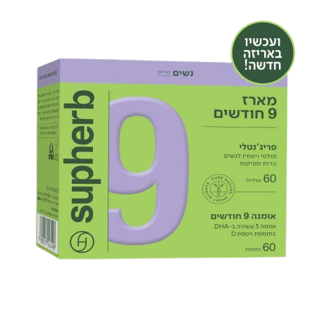 תוסף תזונה "9 חדשים" של Supherb מיועד לנשים בהריון ומכיל DHA ואומגה 3, חלבון וסידן. המוצר נועד לתמוך בתהליך ההיריון ובתזונה מאוזנת.