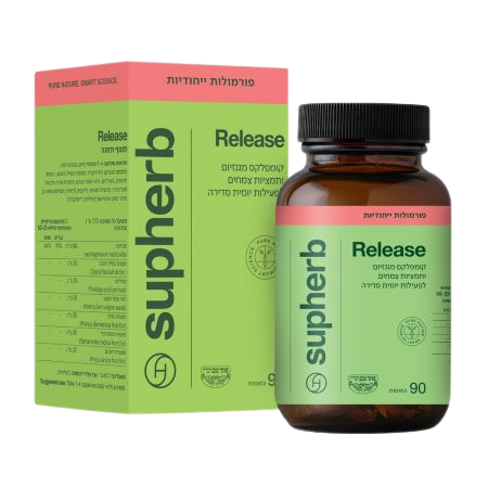 תוסף תזונה "Release" של Supherb מכיל מינונים מתואמים של מגנזיום ותמציות צמחים, המיועדים לתמיכה בתפקוד תקין של .