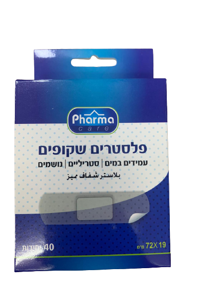 פלסטרים שקופים | פארמה | מידות 19*72 | 40 יחידות | עמידים במים | סטריליים | נושמים