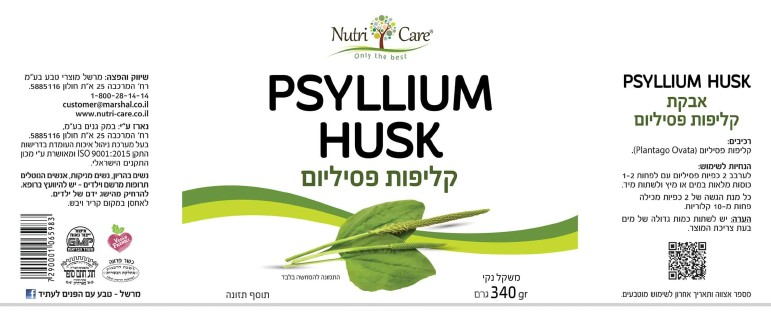 אבקת קליפות פסיליום (PSYLLIUM HUSK) - משקל נקי: 340 גרם - מבית נוטרי קר