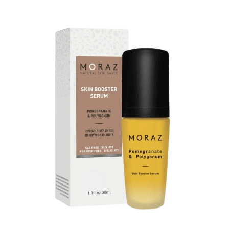 סרום "Skin Booster Serum" של MORAZ מיועד למי שמחפש פורמולה טבעית לעור הפנים. הוא מכיל תמציות של רימונים ופוליגונום, המספקות הזנה ולחות עשירה. הסרום נועד לשפר את האלסטיות ולסייע בשמירה על עור חלק וזוהר.