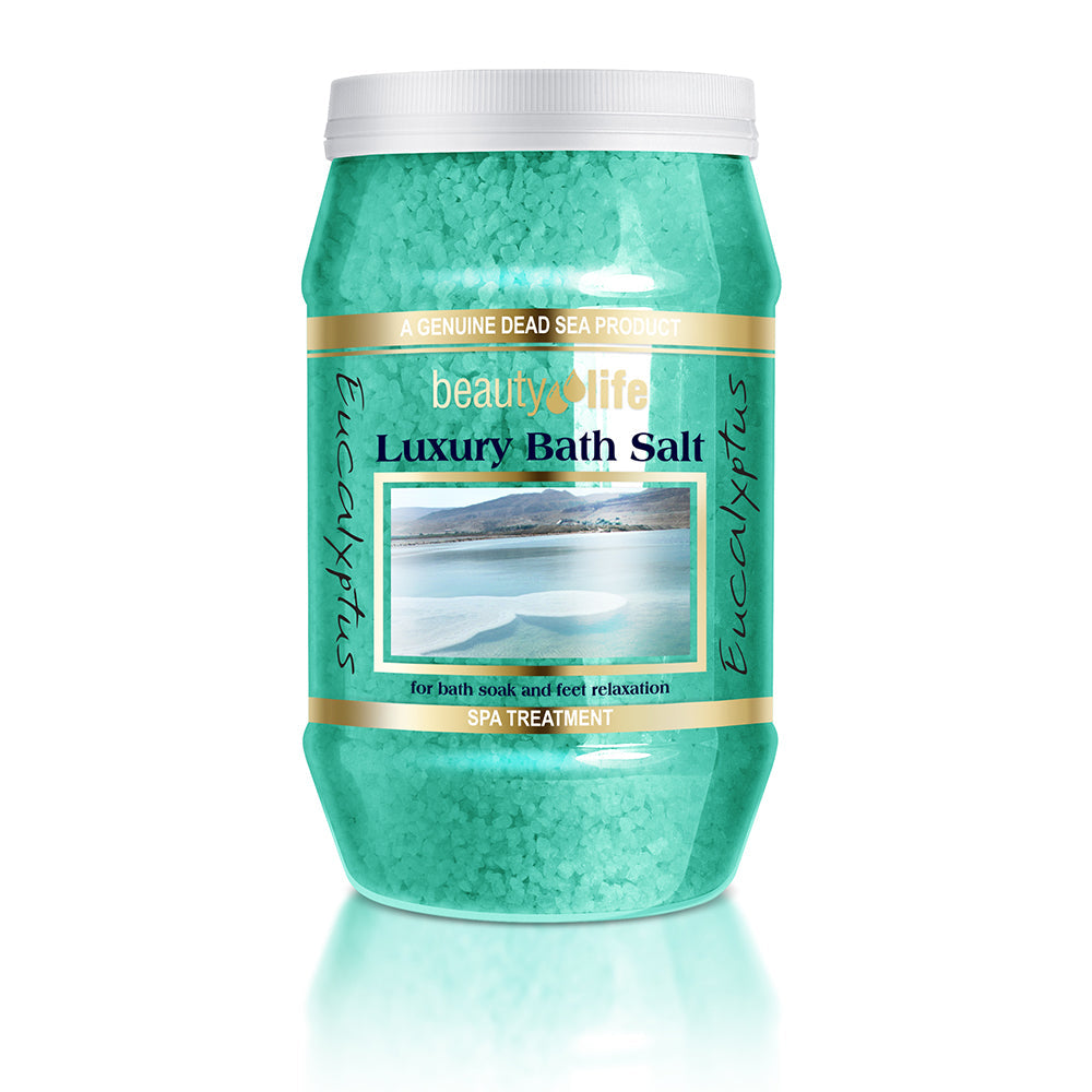 מלח אמבט יוקרתי עם אקליפטוס, מכיל מינרלים מהים המלח ומציע הוא פתרון טבעי להקלה על בעיות עור, רפואה טבעית ורגיעה.