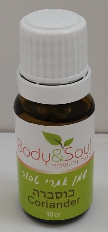 שמן אתרי של כוסברה באריזת בקבוק קטן של 10cc, המיוצר על ידי המותג Body & Soul.