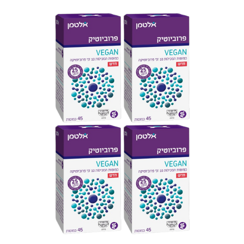 פרוביוטיק VEGAN (ויגן) - 45 כמוסות המכילות 25 מיליארד חיידקים מ-10 זני פרוביוטיקה - כשר פרווה - מבית אלטמן - אריזת רביעיה
