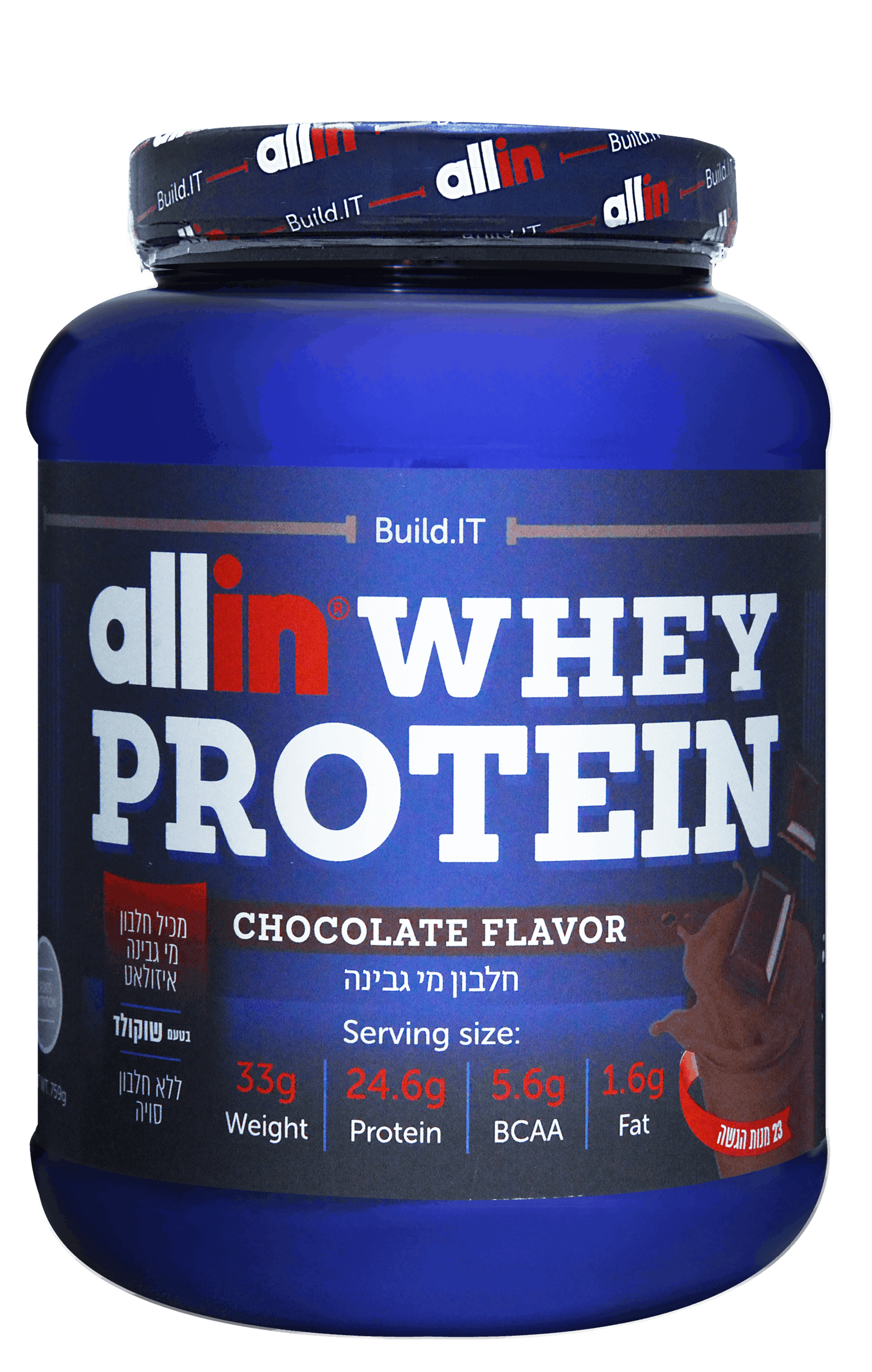 ALLIN - PROTEIN POWDER | אבקת חלבון מי גבינה אול אין טעם שוקולד | 759 גרם |