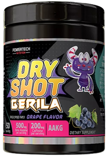 • דריי שוט גרילה | אבקה להכנת משקה חומצות אמינו | בתוספת ויטמין B3 וקפאין | בטעם ענבים | מכיל 250 גרם |