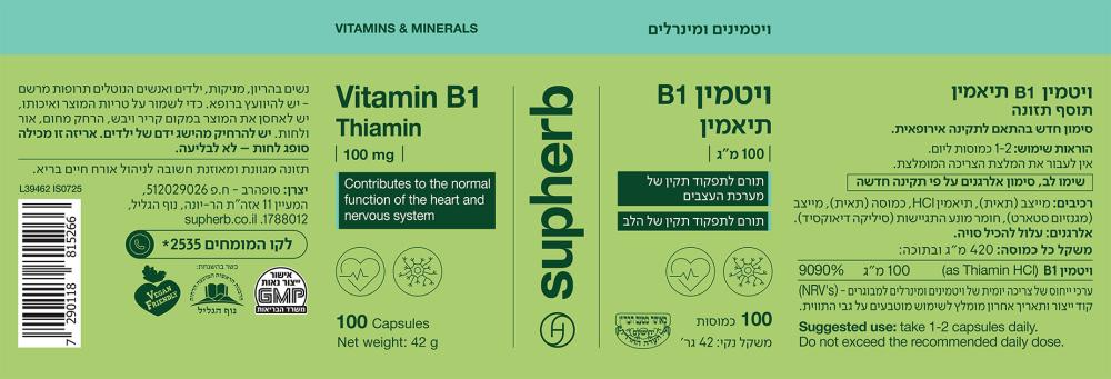 ויטמין B1 תיאמין | 100 מ"ג | 100 כמוסות | סופהרב