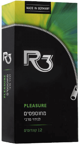 R3 PLEASURE הוא מוצר ייחודי של קונדומים מחוספסים המיוצרים בגרמניה, המיועדים להעניק גירוי מירבי במהלך יחסי מין. כל קונדום משומן בחומר סיכוך מעולה ומצויין לשימוש לבטיחותכם. הקונדומים עשויים מגומי טבעי (לטקס), המספקים מניעת היריון והקטנת הסיכון להידבקות במחלות מין.