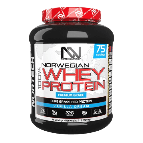 אבקת חלבון מי גבינה בטעם וניל מכיל 2.27 ק"ג מבית NORTECH NUTRITION