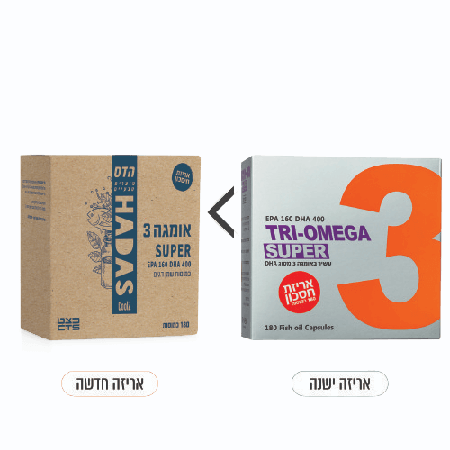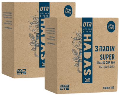 אומגה 3 סופר | מכיל 160 EPA ו-400 DHA | מכיל 180 כמוסות | הדס | מבצע זוגי 360 כמוסות