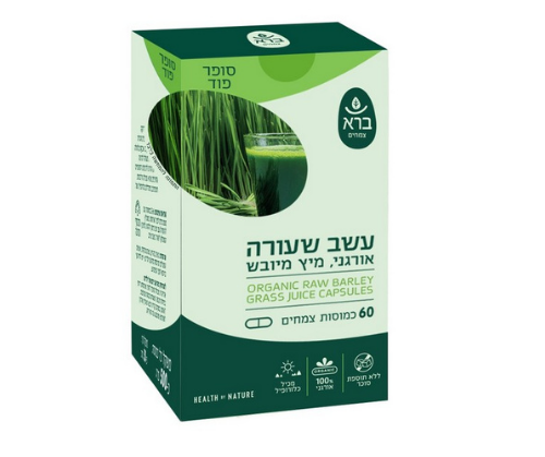 עשב שעורה | אורגני | מיץ מיובש | מכיל 60 כמוסות צמחים | ללא תוספת סוכר | 100 אחוז אורגני | כשר