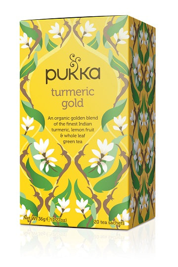 קופסת תה "Turmeric Gold" של Pukka מביאה עמה תערובת מיוחדת של כורכום הודי, תה ירוק, פירות לימון וליקוריץ. תה זה הוא אורגני ואינו מכיל קפאין, מה שמאפשר ליהנות ממנו בכל שעה של היום.