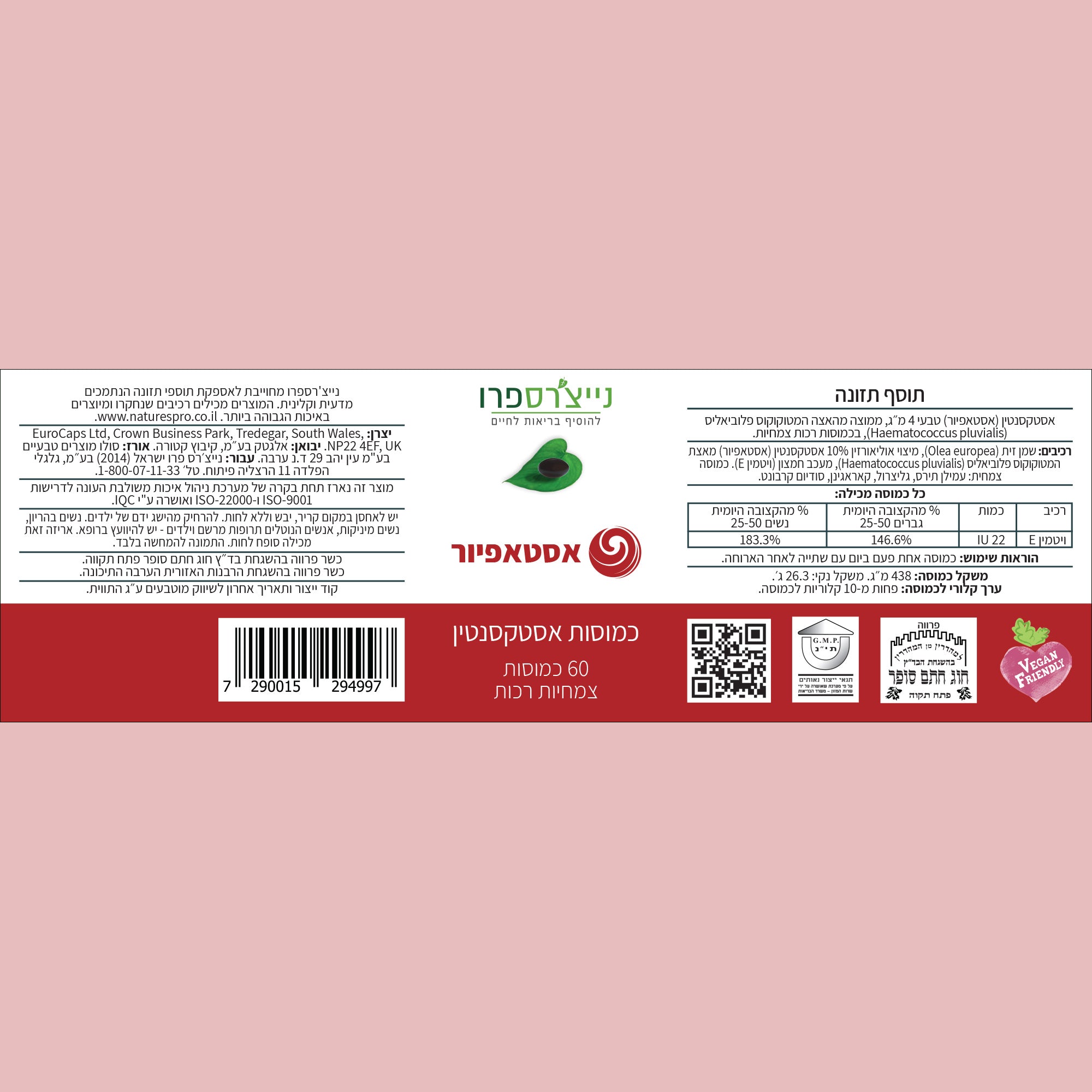 אסתא פיור נייצ'רס פרו - מכיל 60 כמוסות אסטקסנטין - Nature's Pro