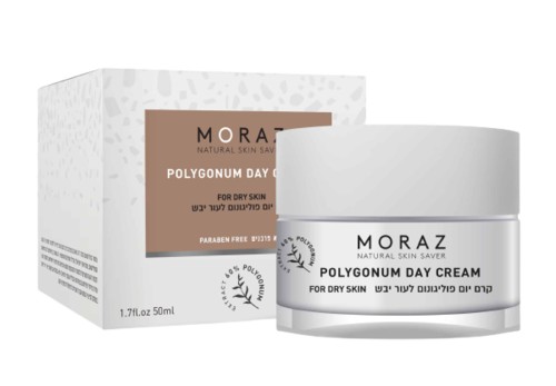 קרם יום POLYGONUM DAY CREAM מבית MORAZ מיועד לעור יבש. המוצר מכיל שמן חוחובה שמסייע בספיגה טובה בעור ובטיפוחו, תוך שמירה על רמת הלחות בעור הפנים והצוואר.