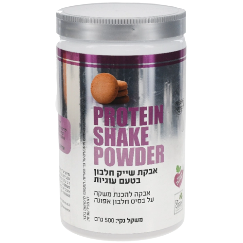 אבקת שייק חלבון בטעם עוגיות על בסיס חלבון אפונה משקל נקי 500 גרם כשר פרווה