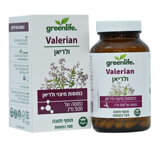 ולריאן גרין לייף - תוסף טבעי לשינה וחרדה 100 כמוסות