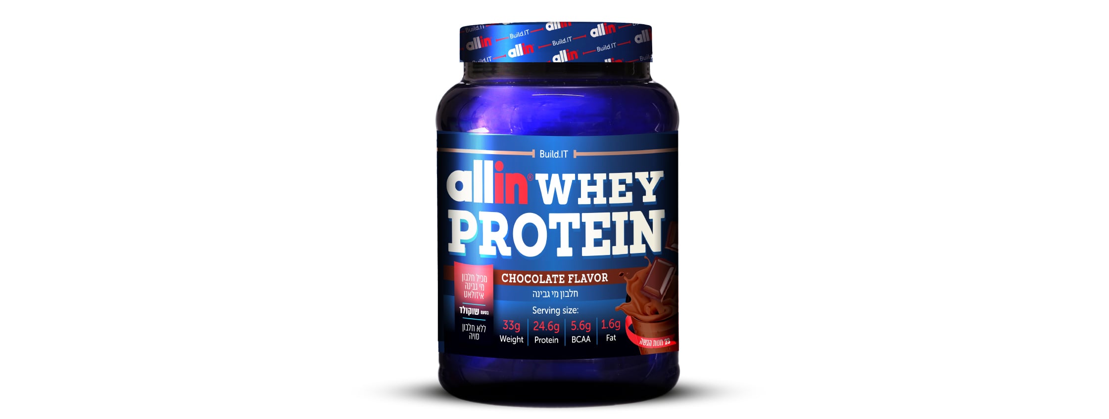 ALLIN - PROTEIN POWDER | אבקת חלבון מי גבינה אול אין טעם שוקולד | 759 גרם |