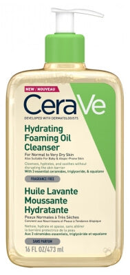 CeraVe Hydrating Foaming Oil Cleanser 473 מ"ל הוא טיפוח המנקה בעדינות, מחזיר ליפידים, מעניק לחות לעור רגיל עד יבש מאוד ולעור עם נטייה אטופית, תוך שיקום מחסום העור.