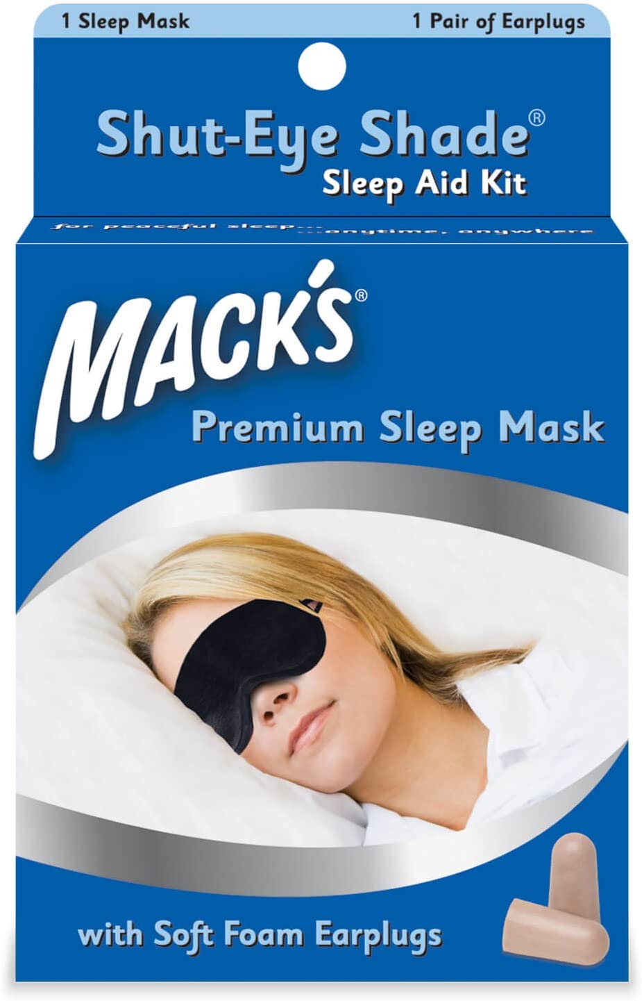 ערכת סיוע לשינה כוללת זוג אחד של אטמי קצף רכים של מאק ונרתיק אחסון. מידה אחת מתאימה לכולם.