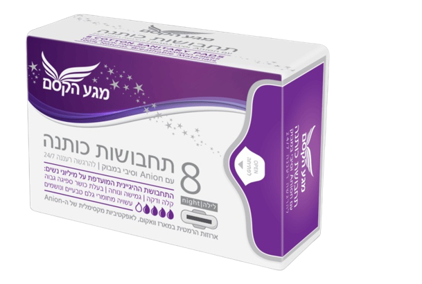 תחבושות כותנה | תחבושות לילה | עם כנפיים מכותנה נושמת | אניון וסיבי במבוק | מכיל 8 יחידות | ספיגה גבוהה | באריזה הרמטית