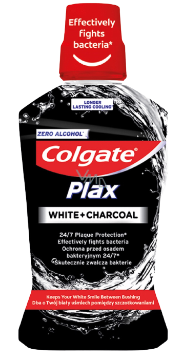 קולגייט פלאקס | מי פה | ללא אלכוהול | לבן פלוס פחם | מכיל 500 מ"ל